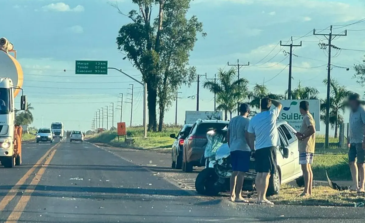 Dois veículos se envolveram em um acidente na rodovia PR-182, na saída de Palotina para Toledo neste sábado (24). Segundo informações extraoficiais, a colisão envolveu um SUV e um VW Gol.