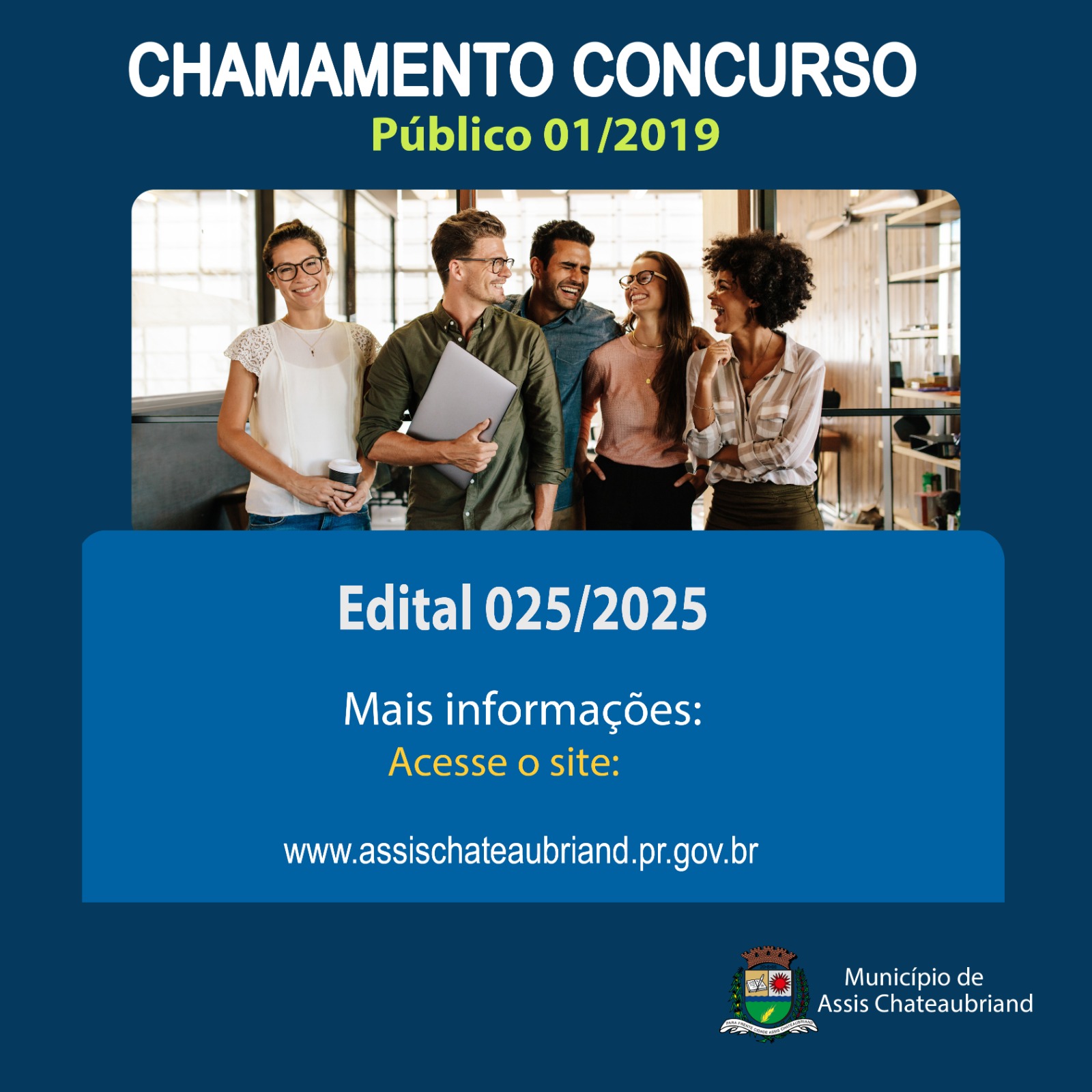Assis Chateaubriand – Publicado nesta segunda-feira (24), em diário oficial do município de Assis Chateaubriand, o edital 025/2025, tratando-se da centésima quinquagésima sexta convocação de candidato habilitado no concurso público 01/2019, visando à nomeação no cargo de Enfermeiro Padrão I.