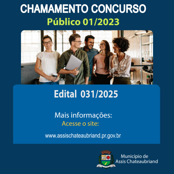 PorPalotina 24 Horas12 de março de 2025Regional – Publicado nesta quarta-feira (12), em diário oficial do município de Assis Chateaubriand, o edital 031/2025, tratando-se da quadragésima quarta convocação de...