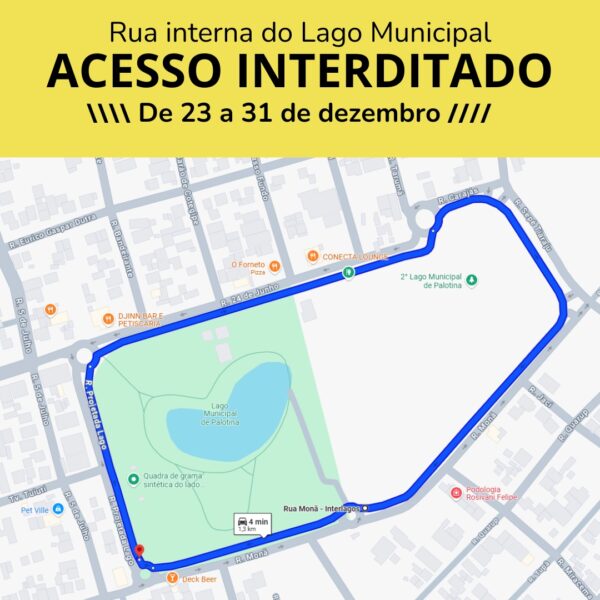 PorPalotina 24 Horas23 de dezembro de 2024Palotina – A Secretaria de Administração de Palotina informa que, em virtude das festividades de fim de ano, a rua interna do Lago...