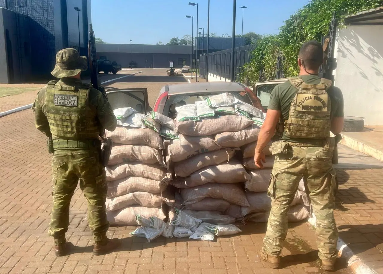 Terra Roxa – Nesta quinta-feira (25), por volta da 07h, no âmbito da Operação Força Total Brasil V, policiais militares do Batalhão de Polícia de Fronteira – BPFron, em ação integrada com policiais militares do Batalhão de Operações Especiais – BOPE e agentes da Polícia Federal do Núcleo Especial de Polícia Marítima – NEPOM/PF, realizaram uma operação de fiscalização e monitoramento. Durante a operação, foi avistado um barco vindo da margem paraguaia em direção à margem brasileira. Após atracar, a embarcação descarregou vários sacos brancos, que foram rapidamente carregados em um veículo Corsa.