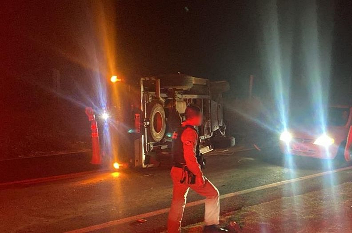 De acordo com informações apuradas no local, o condutor de uma caminhonete Ford F-150 perdeu o controle da direção, o que resultou no capotamento do veículo às margens da rodovia.