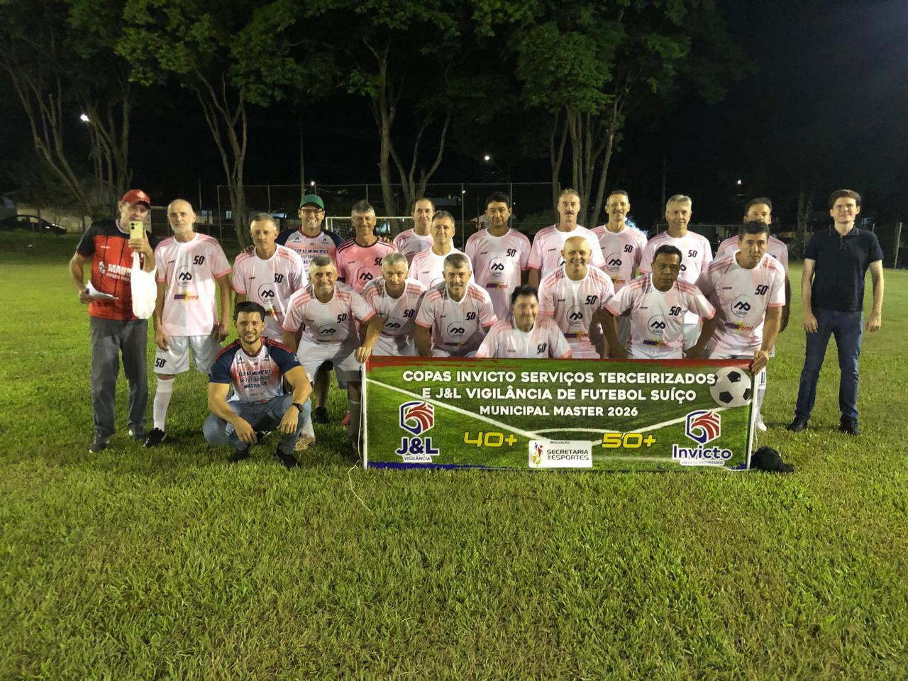 Teve início na noite desta quinta-feira (9), no campo da Afitra, as Copas Invicto Serviços Terceirizados e J&L Vigilância de Futebol Suíço Municipal Máster 2026, reunindo equipes nas categorias 40+ e 50+.