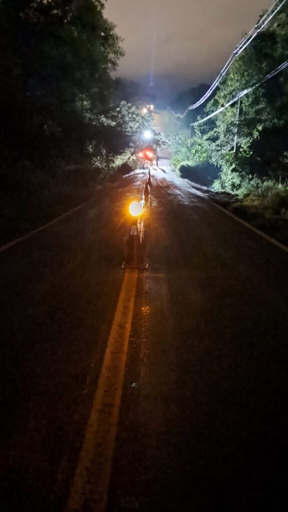 Durante o sábado (1º) e a madrugada de domingo (2), as equipes foram acionadas para quedas de árvores sobre redes elétricas, estradas e rodovias, que provocaram bloqueios totais ou parciais de vias.