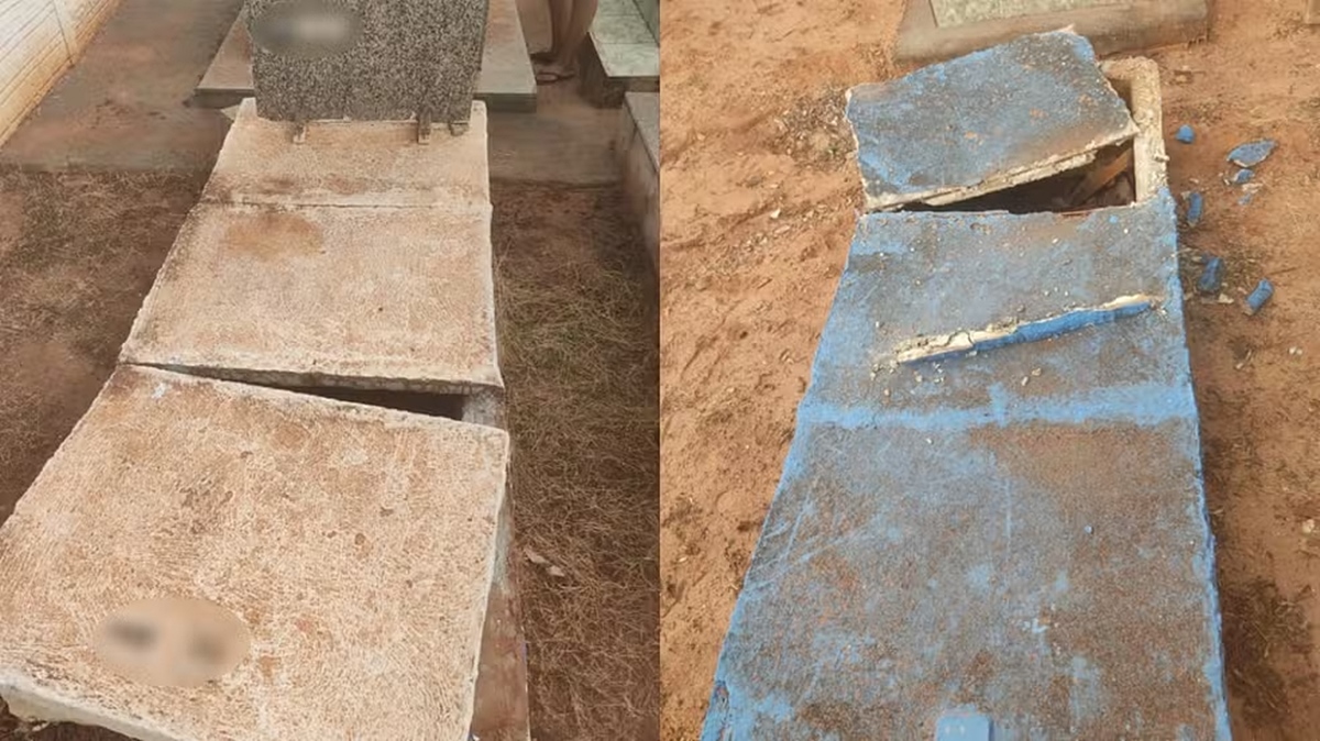 De acordo com o relato policial, oito túmulos foram encontrados quebrados e com os caixões abertos.