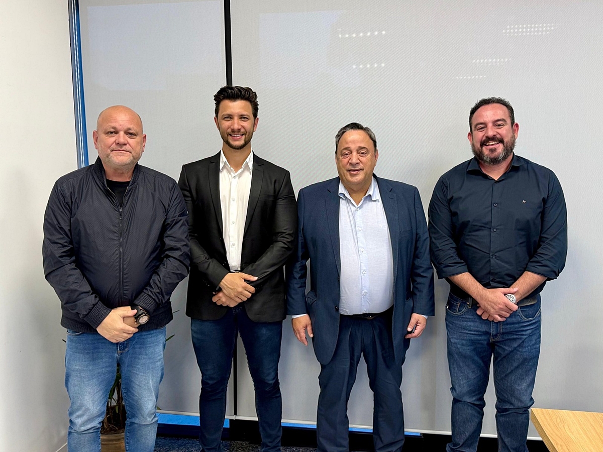 Prefeito Rodrigo Ribeiro com o deputado Hussein Bakri e equipe, em Curitiba. — Foto: Assessoria