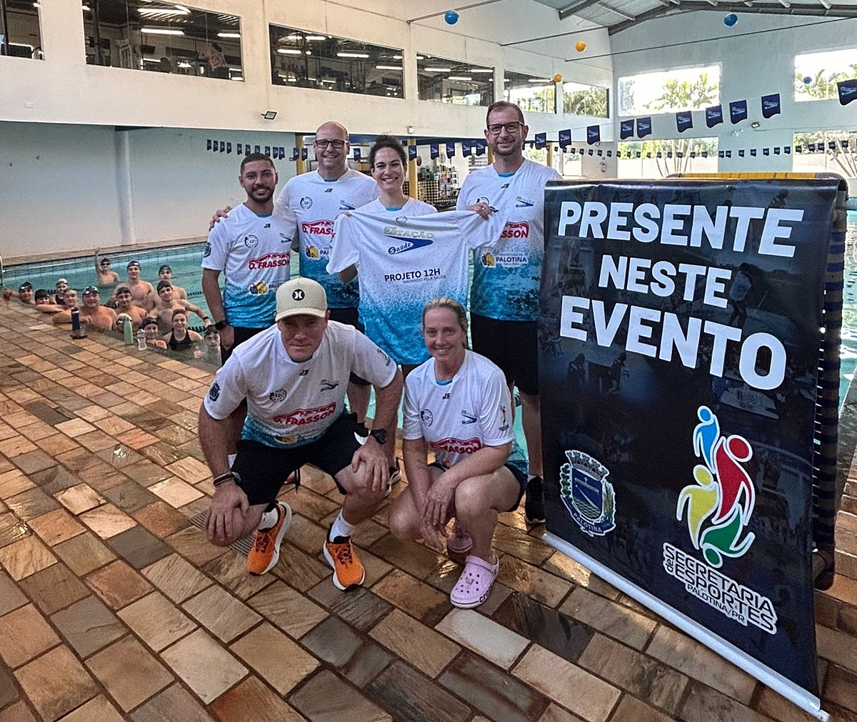NATAÇÃO – Será realizado neste sábado (25), a partir das 8h, o Desafio 12 Horas Nadando pela Saúde, uma verdadeira maratona de resistência e espírito coletivo que reunirá mais de 120 nadadores. Organizado pela Secretaria de Esportes de Palotina em parceria com a Nova Estação Saúde, o evento terá duração de 12 horas ininterruptas, encerrando-se às 20h. Divididos em seis equipes, os atletas se revezarão na piscina com um objetivo comum: nadar a maior distância possível em nome da saúde e da solidariedade.