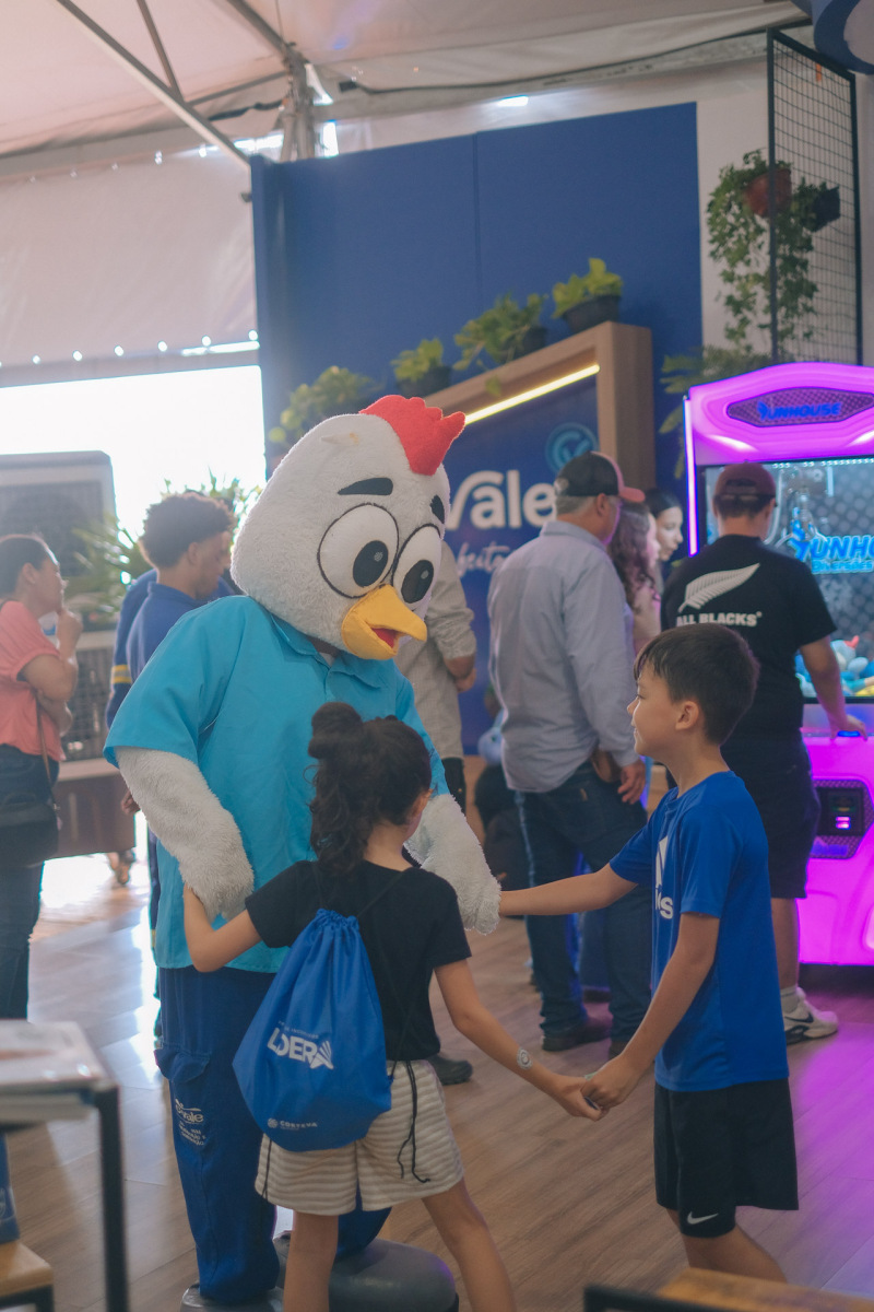 Cerca de 500 crianças participantes do programa Cooperjovem ao longo de 2025 circulam pelo evento acompanhadas por monitores da cooperativa. Outro grupo que chama atenção é formado pelos Bombeiros Mirins, que estiveram no programa neste ano e visitam o local com seus uniformes nas cores marrom e vermelho.