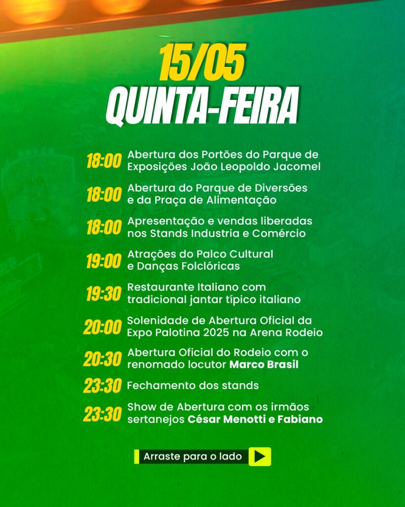 Confira abaixo a programação completa da Expo Palotina 2025.