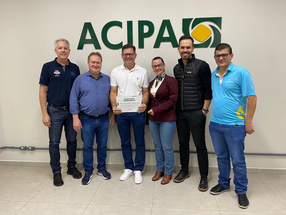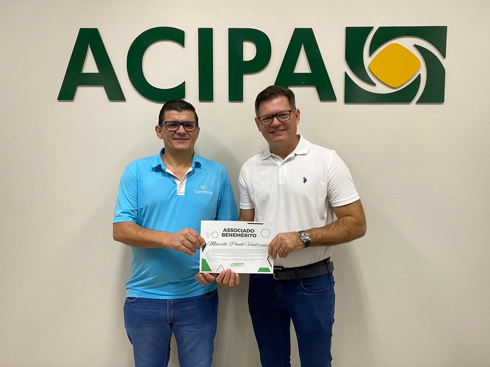 O empresário e ex-presidente da ACIPA – Associação Comercial, Industrial e Agropecuária de Palotina, Marcelo Vendrame, recebeu na manhã desta quarta-feira (3) o título de Associado Benemérito. O título é uma forma de homenagear o ex-presidente pelos serviços prestados e mantê-lo como associado, contribuindo com a diretoria, uma vez que Vendrame vai se mudar para o exterior.