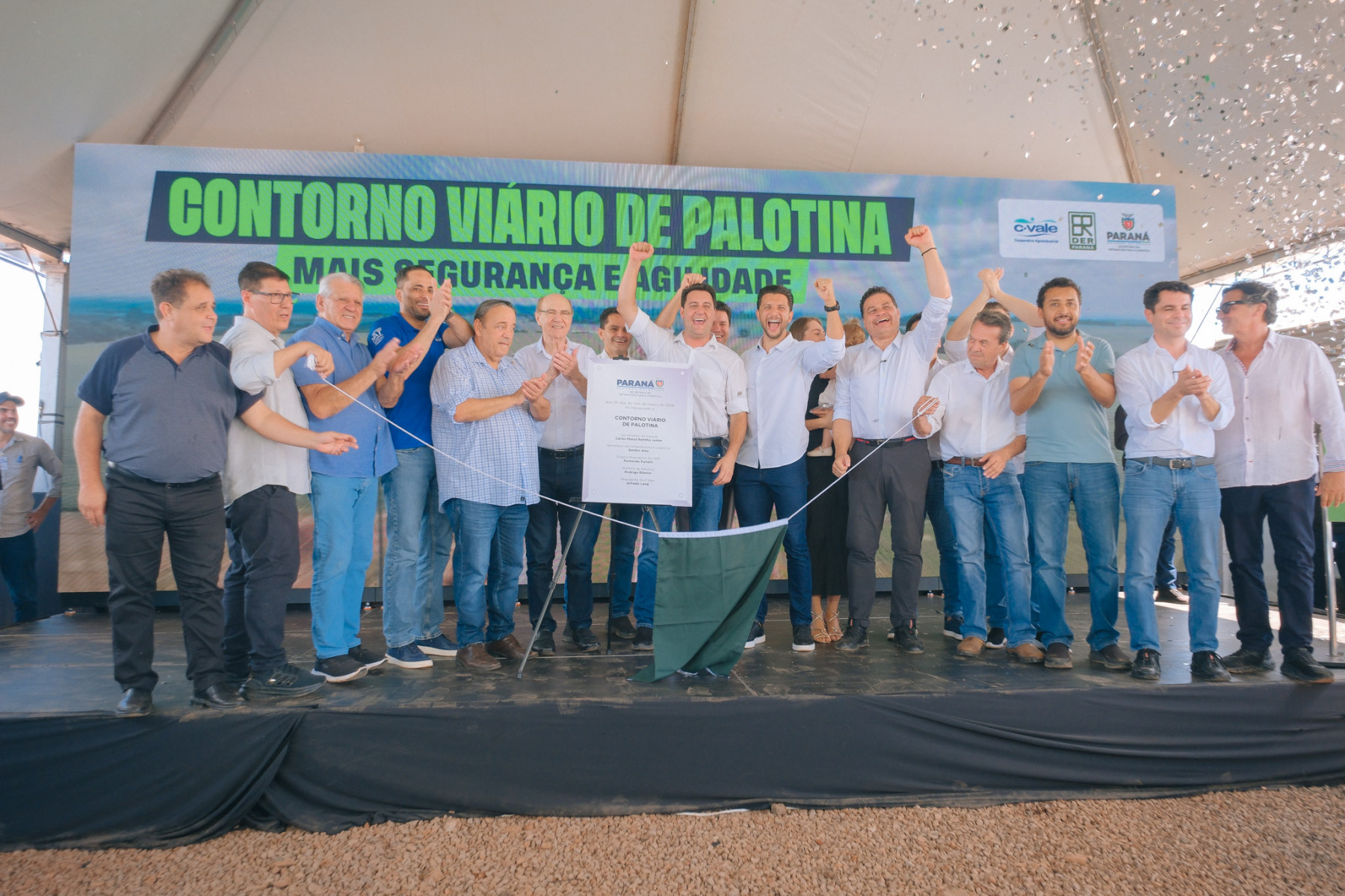 A inauguração do contorno viário de Palotina reuniu, no dia 20 de março, autoridades federais, estaduais, municipais e representantes da C.Vale. O governador Ratinho Junior afirmou que a fórmula adotada para concluir a obra “é uma inovação na administração pública”. Ele estava se referindo ao fato de a C.Vale ter assumido a gestão da obra, contratado a empreiteira e realizado os pagamentos, sendo ressarcida em créditos de ICMS pelo Estado. Segundo ele, esse formato representou um ganho de dois anos para a finalização dos trabalhos.