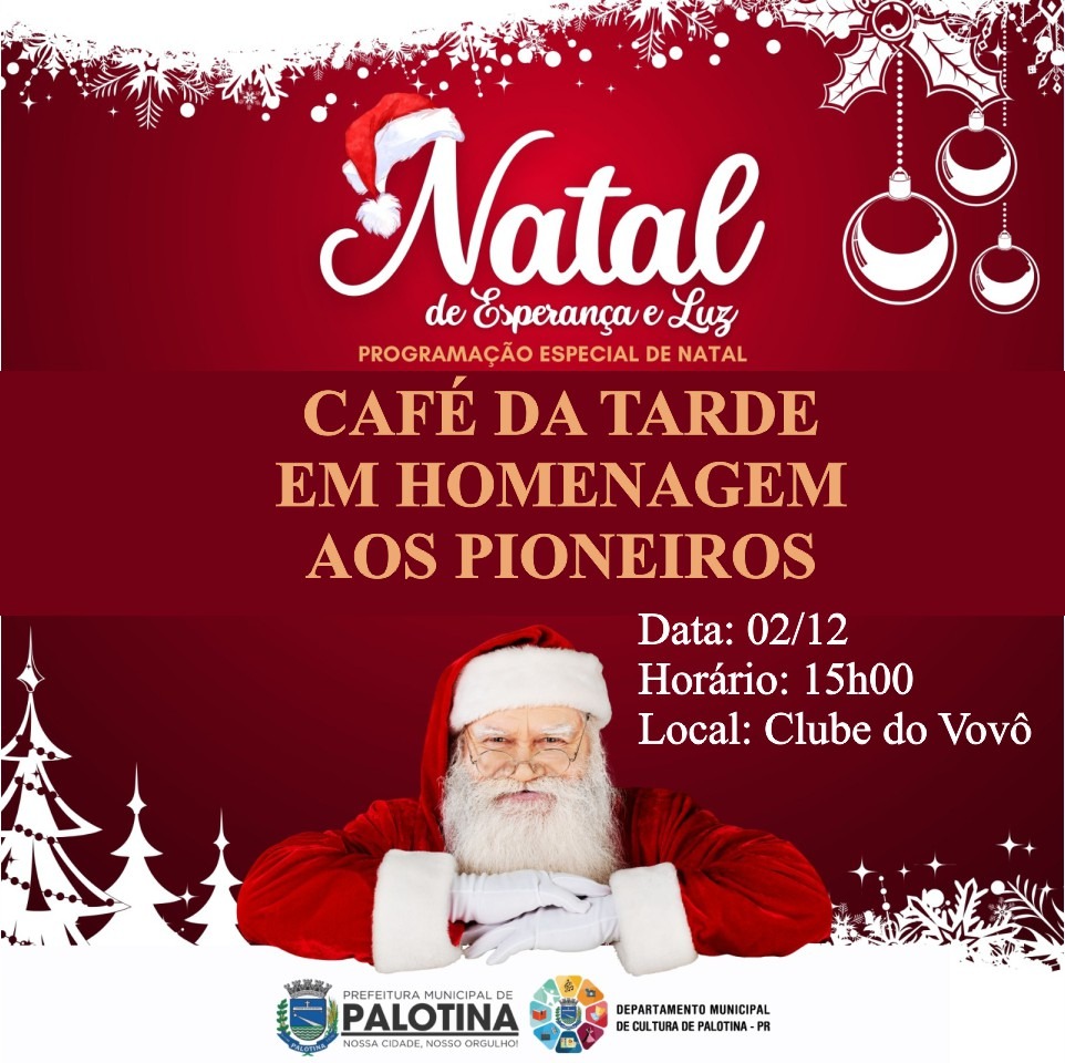 Palotina – Nesta segunda-feira, 2 de dezembro, o Centro de Convivência da Família, conhecido carinhosamente como Clube do Vovô, será o cenário de um especial café da tarde que começa às 15h00. Este evento é dedicado aos pioneiros de Palotina e seus familiares, em uma celebração que visa reconhecer e valorizar as contribuições essenciais desses cidadãos para o desenvolvimento da cidade.