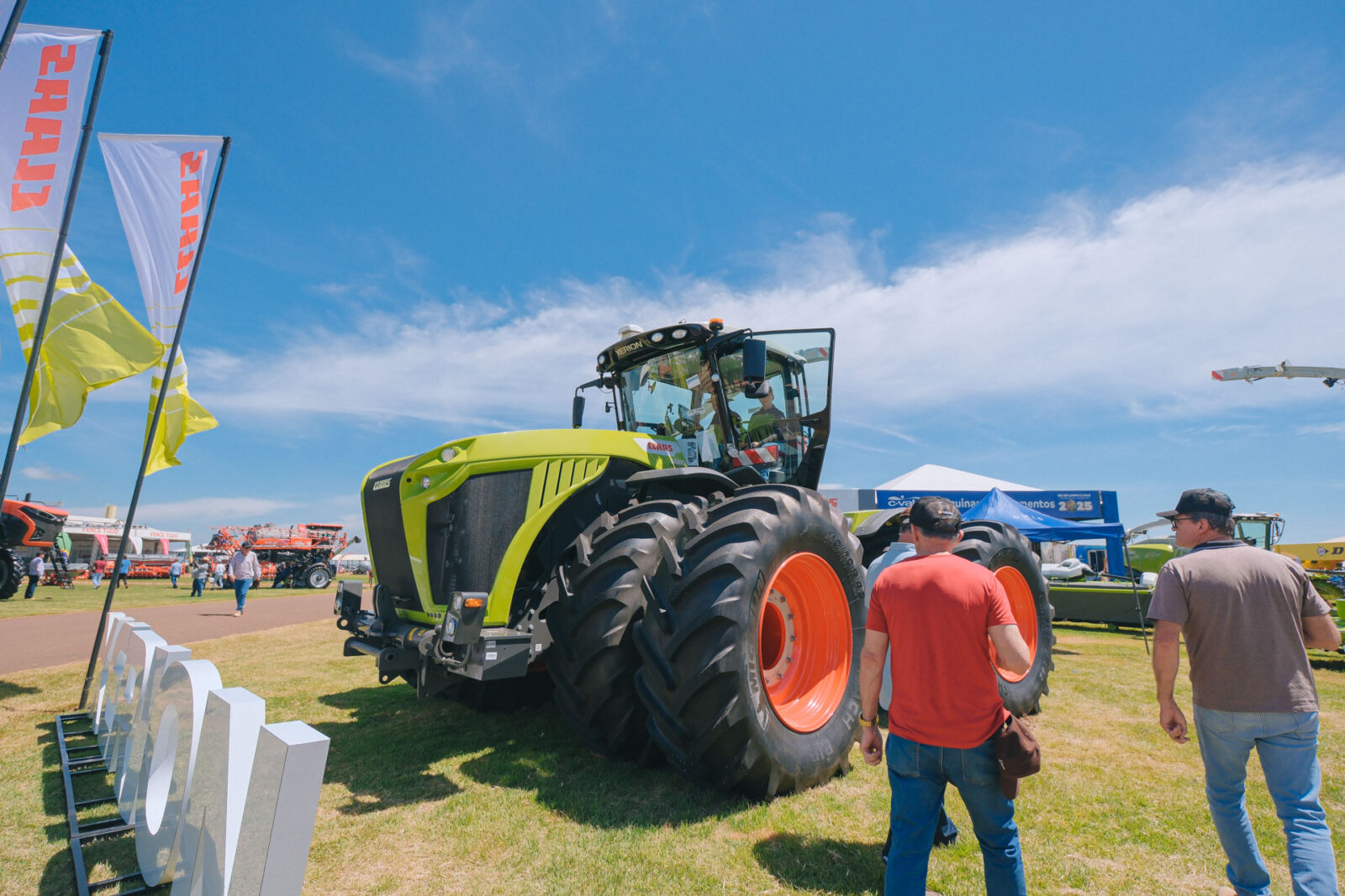 Na área de máquinas, um dos modelos que mais despertou curiosidade foi o trator Claas Xeron 5000. Com 530 cv de potência e oito pneus, o equipamento é indicado para grandes áreas e impressiona pelo porte e pela cabine equipada com monitores e comandos eletrônicos.