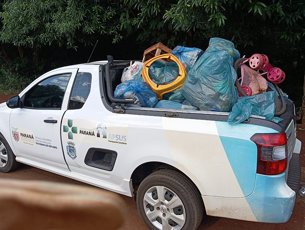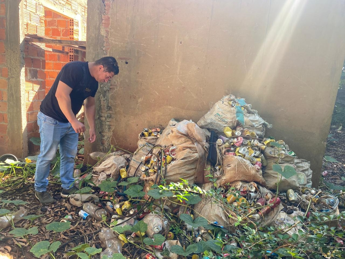 Durante as ações, os agentes de endemias encontraram grande quantidade de lixo descartado irregularmente. Segundo a equipe, o material recolhido foi suficiente para encher a caçamba de uma caminhonete Montana. No local também foram encontradas seringas, o que acende alerta para riscos à saúde pública.