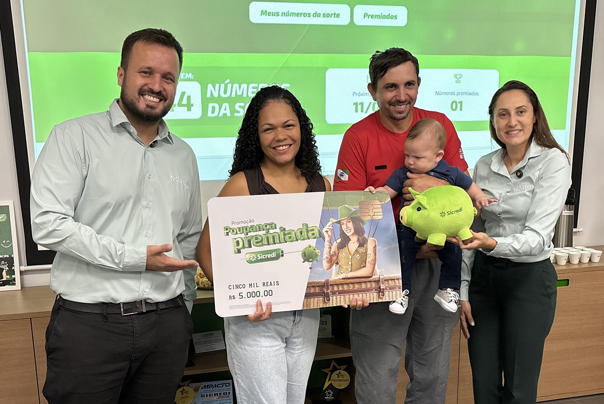 A entrega de um prêmio de R$ 5 mil marcou mais uma etapa da campanha Poupança Premiada Sicredi em Palotina. A ganhadora, Caroline Santos, foi a primeira contemplada do município nesta edição da promoção.