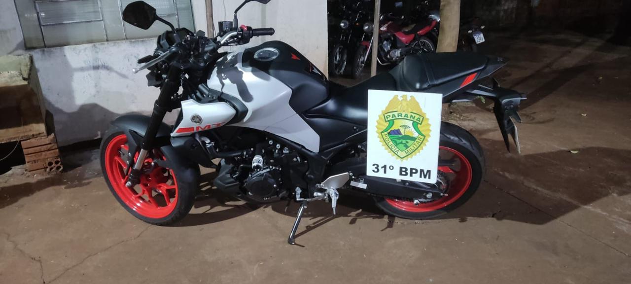 A equipe policial conseguiu localizar o suspeito e apreender a motocicleta.