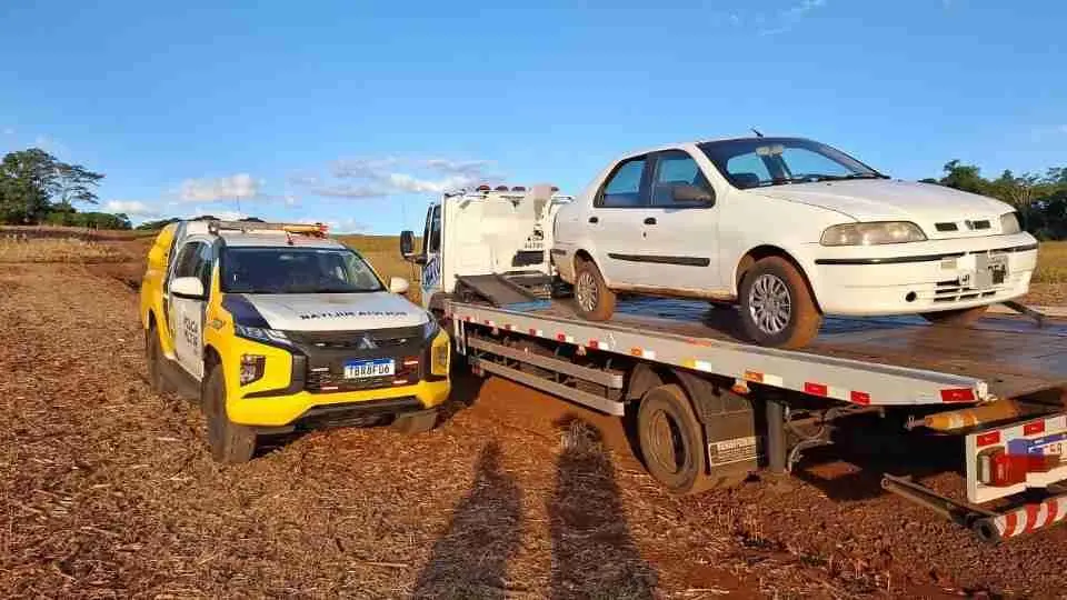 O carro foi apreendido e encaminhado ao pátio do Batalhão de Polícia Rodoviária.