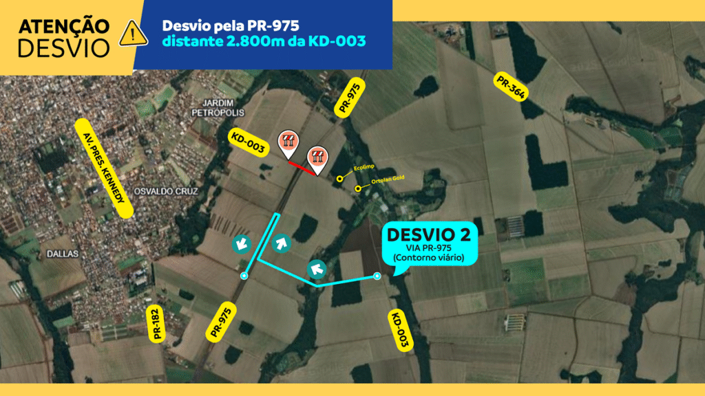 A partir de 1º de outubro, motoristas devem seguir desvio pela PR-364 ou pelo próprio contorno; atenção redobrada é recomendada pelas empresas responsáveis pelas obras
