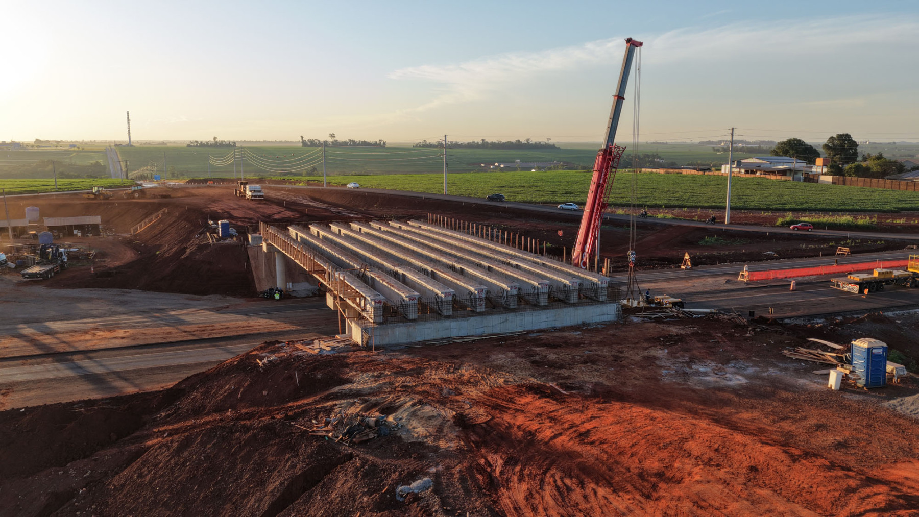 Foram posicionadas oito vigas de 32,5 metros e 16 vigas de 9,75 metros sobre a rodovia, etapa considerada estratégica para o andamento do trecho.