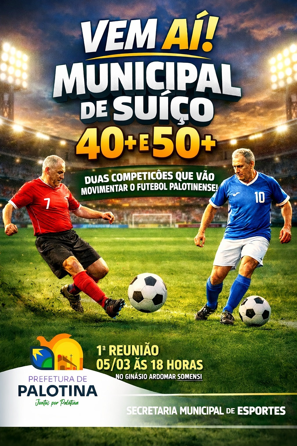 A Prefeitura de Palotina anunciou a realização do Campeonato Municipal de Futebol Suíço nas categorias 40+ e 50+, voltado a atletas veteranos do município. A competição será organizada pela Secretaria Municipal de Esportes.