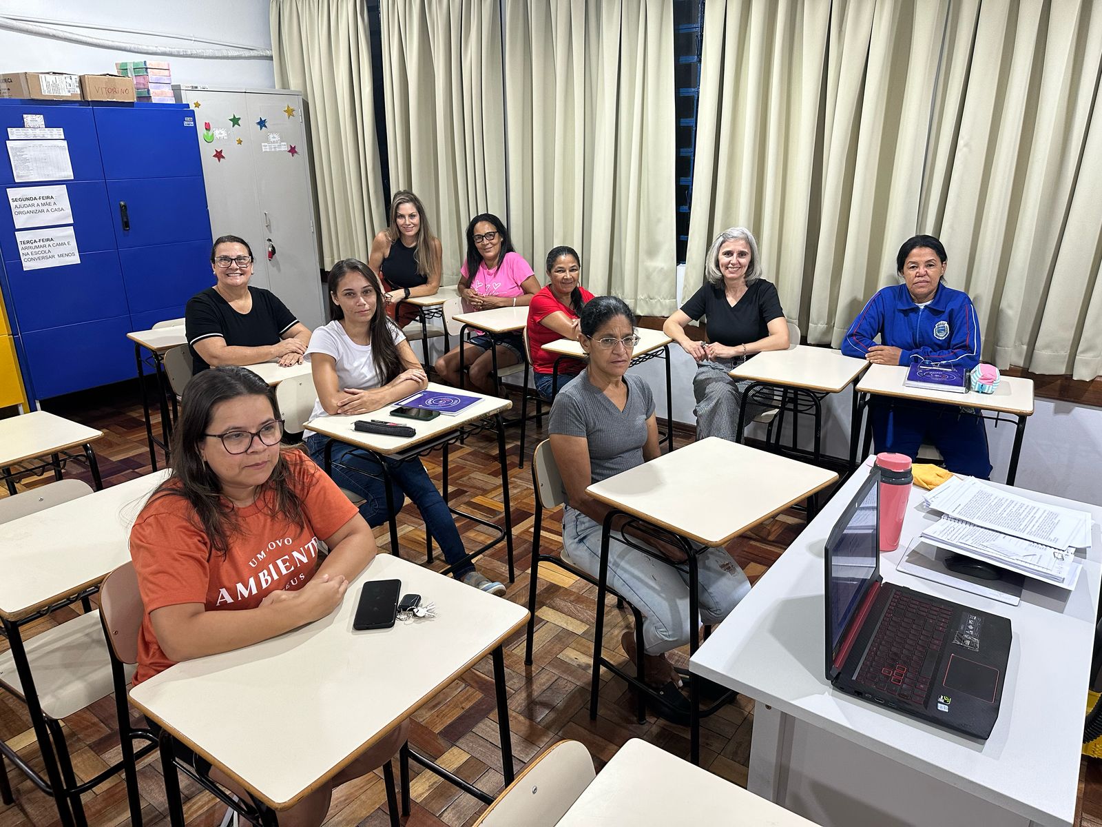 Palotina – Na noite da última terça-feira (18), a secretária de Educação e Cultura, Marinês Marafon Kuki, acompanhada pela professora Franciele Hack Sendtko, assessora técnica pedagógica, visitou a turma do Educação de Jovens e Adultos (EJA), que atende alunos que não concluíram o Ensino Fundamental I (1º ao 5º ano). O curso é oferecido na Escola Municipal Padre Vitorino Roggia, localizada no bairro Santa Terezinha, no período noturno.