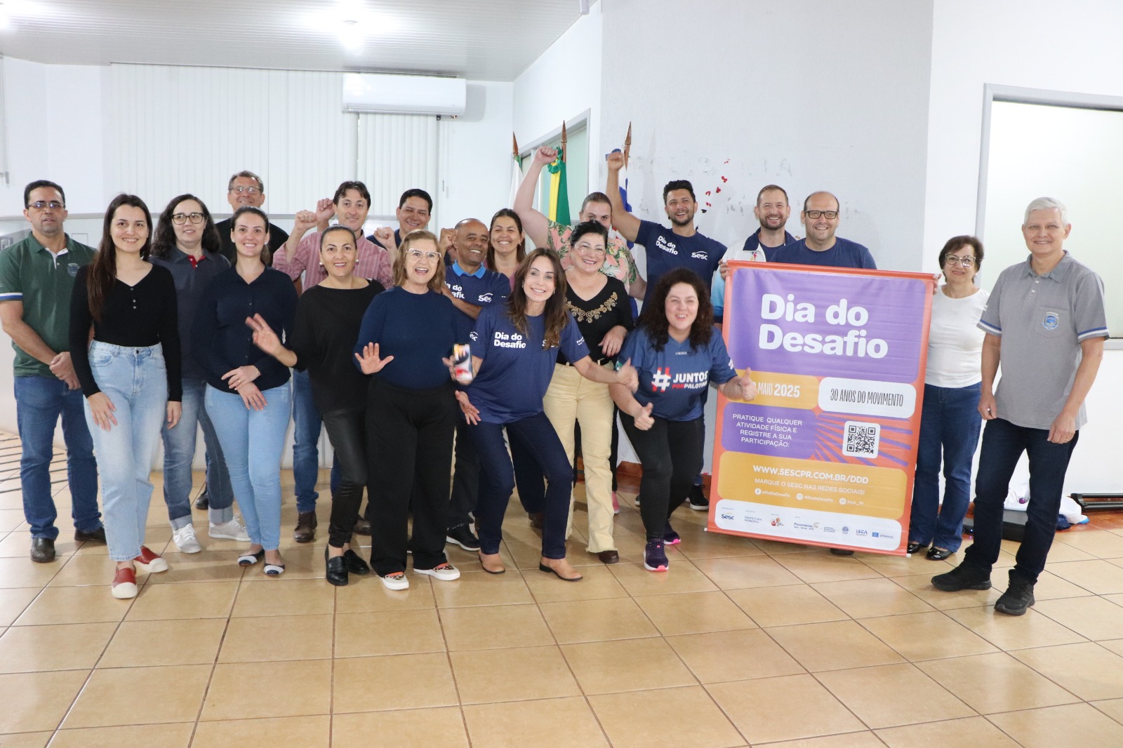 Na manhã desta quarta-feira, 28 de maio, servidores públicos municipais de Palotina participaram do Dia do Desafio, evento que neste ano celebra 30 anos de incentivo à prática de atividades físicas. A mobilização, promovida em todo o país, reforça a importância do exercício como um direito acessível a todos, podendo ser realizado em qualquer momento e lugar.