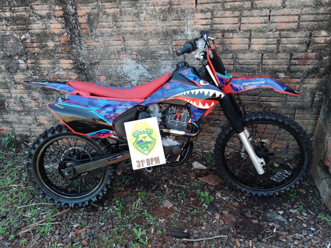 POLICIAL – A Polícia Militar apreendeu uma moto de trilha com escapamento adulterado em Tupãssi, na tarde deste sábado (16).