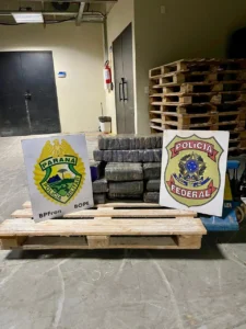 Guaíra – Na última quarta-feira (24), por volta da 19h, no âmbito da Operação Protetor, policiais militares do Batalhão de Polícia de Fronteira (BPFron) e do Batalhão de Operações Especiais (BOPE), em ação integrada com agentes da Polícia Federal do Núcleo Especial de Polícia Marítima (NEPOM/PF), realizaram uma operação de fiscalização em portos clandestinos na cidade de Guaíra-PR. Durante a ação, foram encontrados escondidos em meio à mata diversos fardos de substância análoga à maconha, que, após pesagem, totalizaram aproximadamente 124 kg.