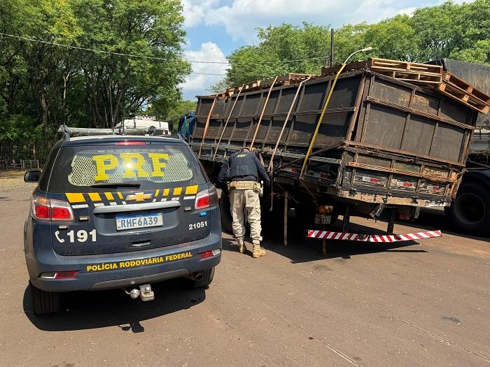 O caminhão foi destombado e removido ao pátio da Receita Federal em Guaíra.