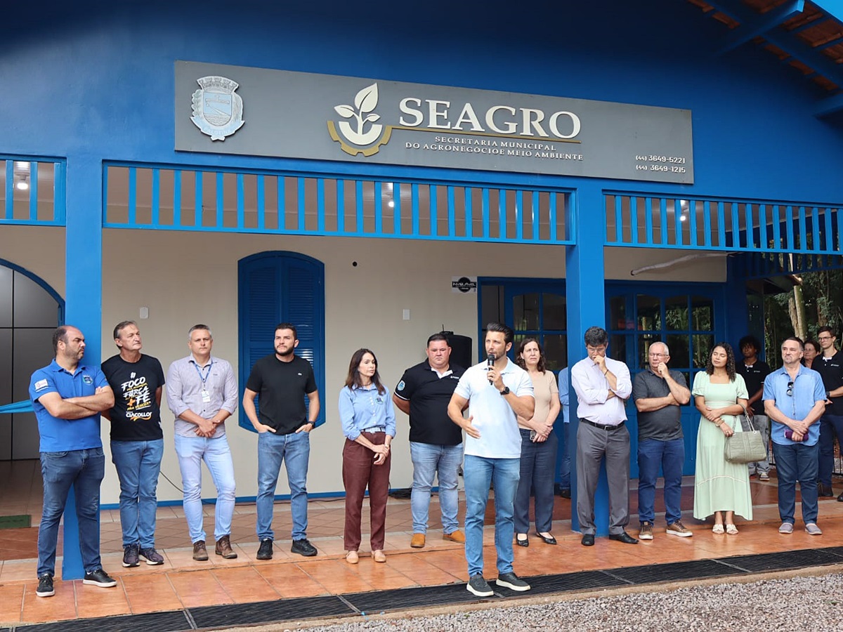 A inauguração do novo espaço da Seagro marca a implantação da secretaria no Parque Ambiental Ida Vendruscolo, reforçando as ações voltadas ao desenvolvimento rural no município.