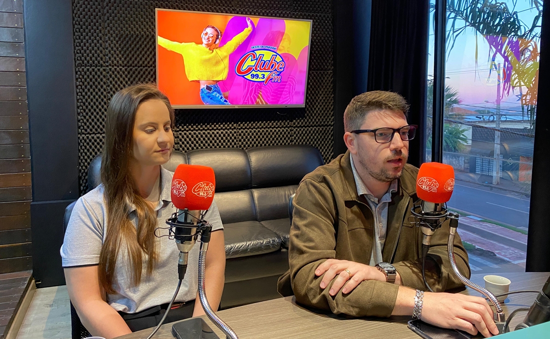 Entrevista – O gerente de negócios Agro Vanderson Cembranel e Lianara Lettrari, assistente de atendimento Agro do Sicredi, participaram na manhã desta quarta-feira (11) do A Hora do Café, na Rádio Clube FM. Durante entrevista ao radialista Robson Muniz, os representantes da instituição destacaram as ações da Semana de Negócios Sicredi, que segue até sexta-feira (13), das 8h às 16h, na Agência Centro de Palotina, localizada na Avenida Presidente Kennedy, nº 766.