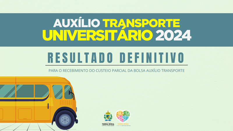 A Secretaria Municipal de Educação e Comissão de Análise e Deferimento e o Município de Terra Roxa, divulgou o resultado definitivo dos inscritos e cadastrados para o recebimento de custeio parcial de transporte de estudantes Bolsa Auxílio Transporte Universitário para o mês junho de 2024, destinado a estudantes de cursos superiores em instituições de ensino de municípios da região.