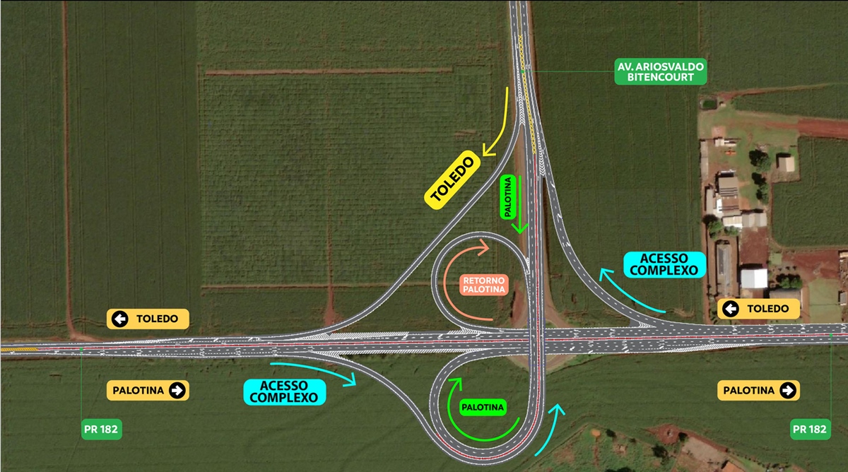 Veículos que trafegarem de Maripá ou Toledo com destino ao complexo industrial deverão utilizar as alças e acessar o viaduto. O mesmo vale para motoristas que saírem de Palotina e precisarem retornar à área urbana.