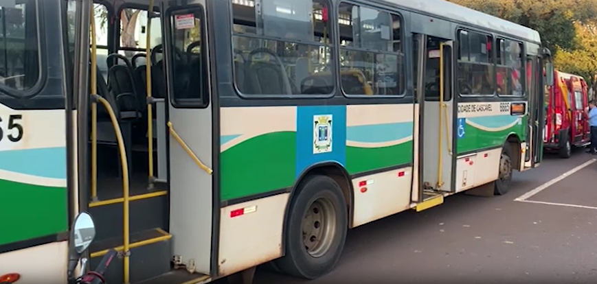 Três passageiros caem dentro de ônibus após freada forte em Cascavel