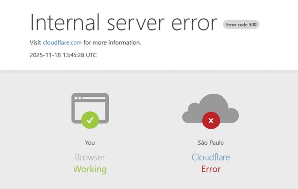 PorPalotina 24 Horas18 de novembro de 2025O serviço de distribuição de conteúdo em nuvem Cloudflare registrou uma instabilidade nesta terça-feira (18). A queda acabou afetando vários sites e apps,...