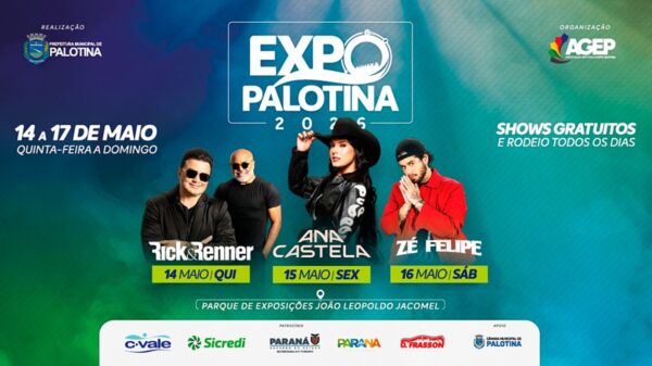PorPalotina 24 Horas17 de abril de 2026A Expo Palotina 2026 terá como destaques os shows nacionais de Rick & Renner, Ana Castela e Zé Felipe. O evento será realizado...