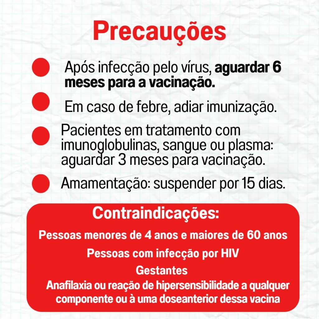 - Após infecção pelo vírus deve aguardar 6 meses para a vacinação;