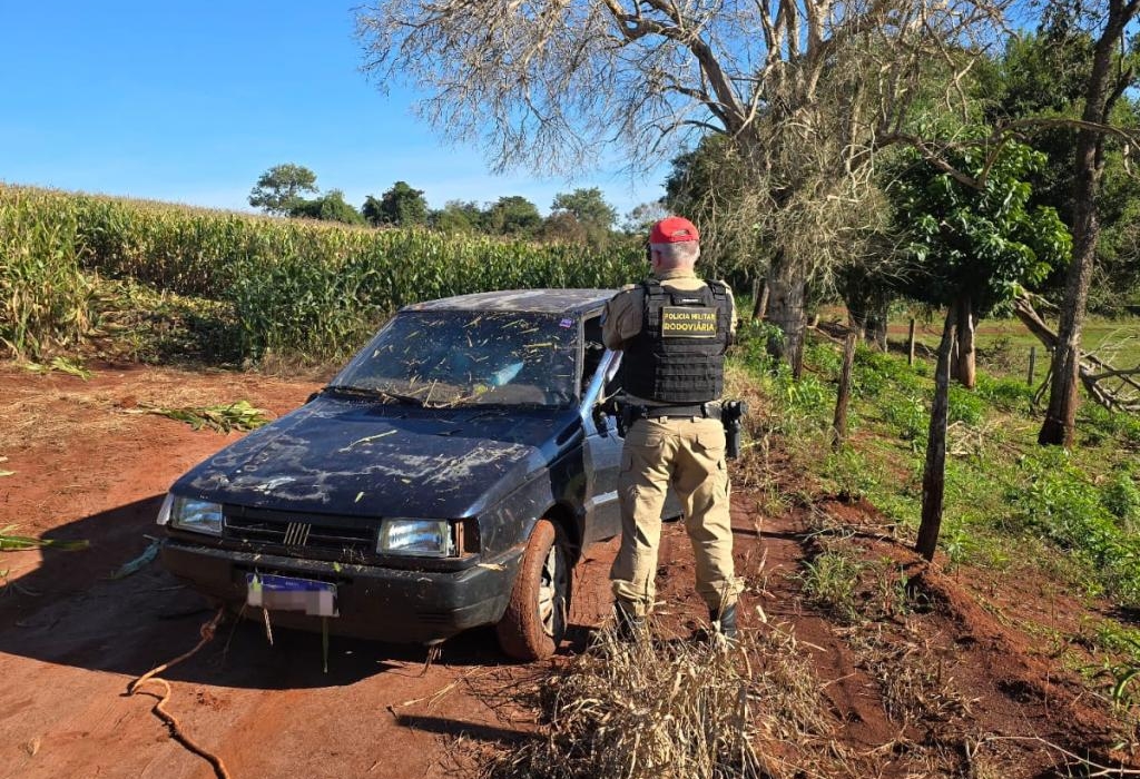 O veículo seguiu por uma estrada secundária e, após alguns quilômetros, o motorista adentrou com o carro em uma lavoura de milho, onde o abandonou e fugiu a pé, desaparecendo em meio à plantação. As buscas foram realizadas, mas o indivíduo não foi localizado.